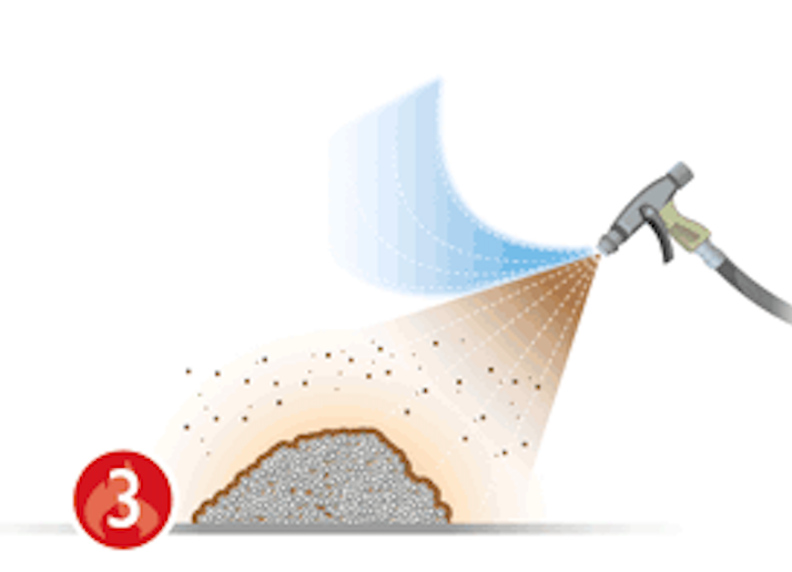 Das Gel lässt sich leicht auf den Brandherd sprühen und bildet dort eine kühlende und luftundurchlässige Schicht, so dass der Brand erstickt.