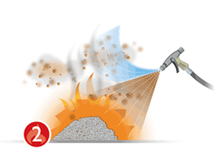 Das als feiner Sprühnebel oder Schaum aufgebrachte Vermikulit mit den darin enthaltenen Wasserpartikeln verdampft und kühlt die Brandquelle zusätzlich ab. Das Vermikulit wird gespalten, vergrößert seine Oberfläche und verteilt sich als feiner, dichter Film auf dem Feuer. Dort trocknet es rasch ab, verschmilzt und bildet eine dichte Sauerstoffbarriere.